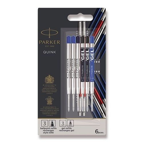 Náhradnínáplně QuinkFlow a gelové náplně do kuličkových tužek Parker.