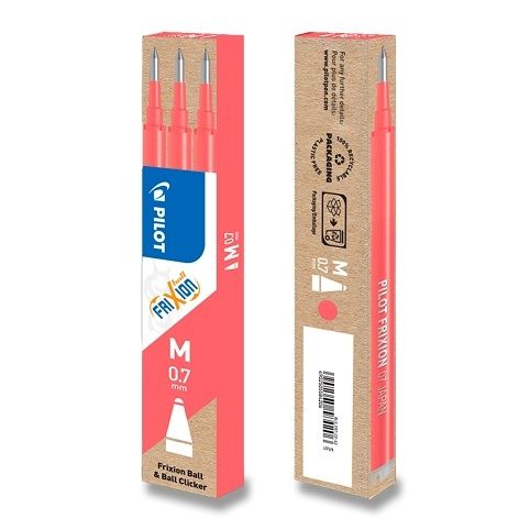 Náplň pro roller Pilot Frixion nebo Pilot Frixion Clicker M 07. V sadě 3 ks náplně. Šíře hrotu M 0,7 mm, šíře stopy 0,35 mm.
