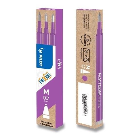 Náplň pro roller Pilot Frixion nebo Pilot Frixion Clicker M 07. V sadě 3 ks náplně. Šíře hrotu M 0,7 mm, šíře stopy 0,35 mm.