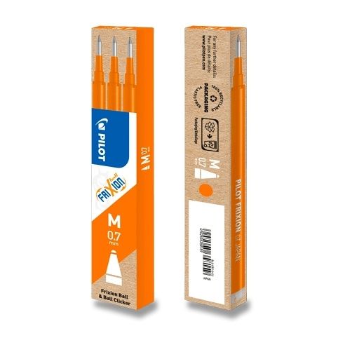 Náplň pro roller Pilot Frixion nebo Pilot Frixion Clicker M 07. V sadě 3 ks náplně. Šíře hrotu M 0,7 mm, šíře stopy 0,35 mm.