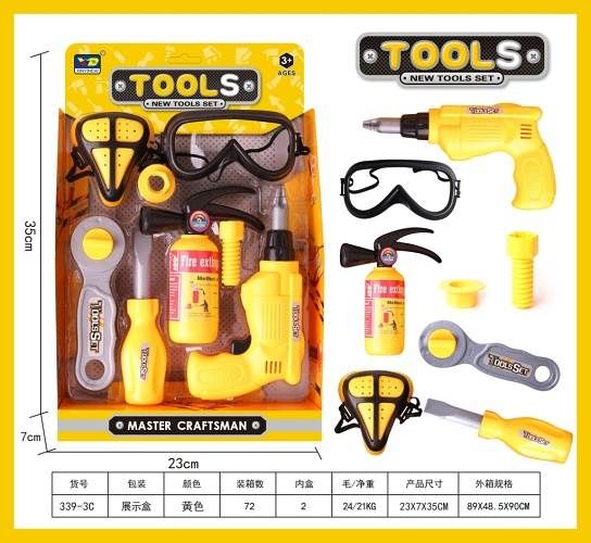 Sada nářadí obsahuje šroubovák, vrtačku, ochranné brýle a jiné doplňky. Sada je vhodná pro děti od 3 let.