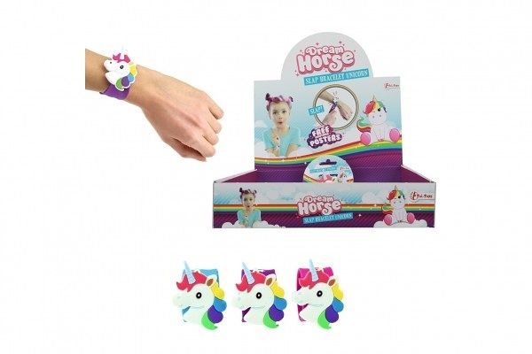 Náramek jednorožec samonavíjecí plast 21cm 3 barvy na kartě