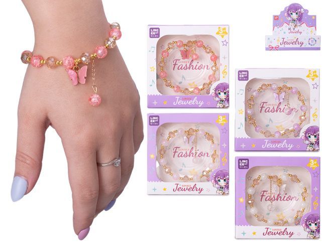 Náramek s motýlím medailonkem v krabičce 4barvy