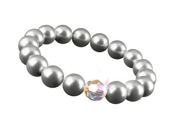 Náramek SWAROVSKI®, stříbrná, perla, velikost M, 10 mm, ART CRYSTELLA®
