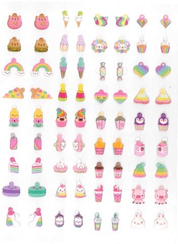 Balení obsahuje sadu samolepek a kovový náramek s kroužky na navléknutí samolepek.
