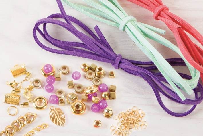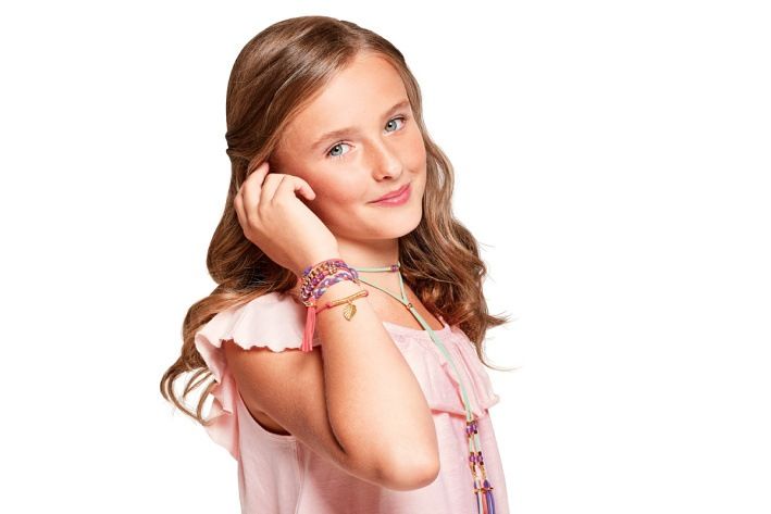 Výroba náramků a náhrdelníků. Korálky se navlékají na látkové provázky, které jsou součástí balení.V balení jsou barevné korálky i doplňky. Baleno v krabici. Doporučený věk 8+