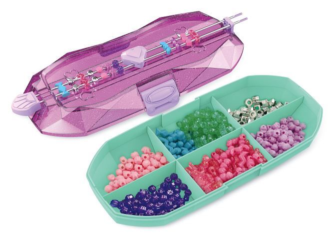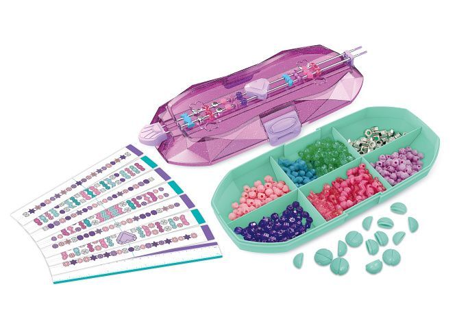 Náramky nástroj na zaplétání set. Vyrob si 15 druhů náramků. Balení obsahuje 457 korálků. Nástroj na zaplétání zároveň slouží jako truhlice na korálky. 15 šablon. Obrázkový návod v balení.