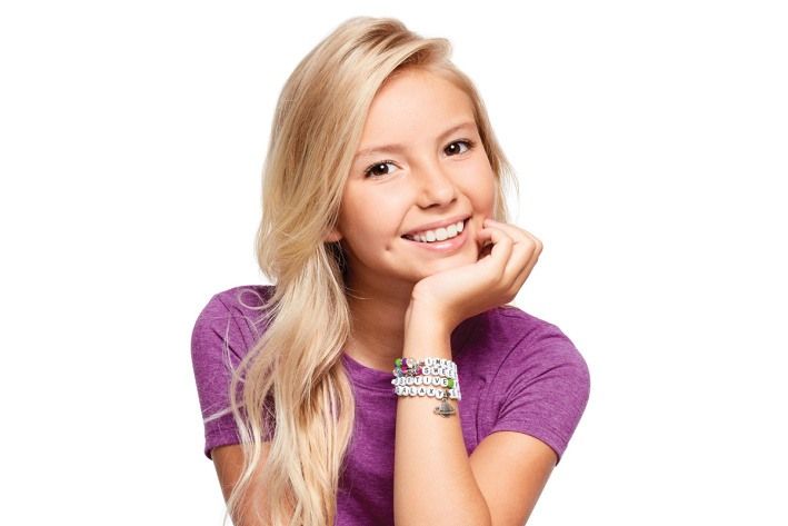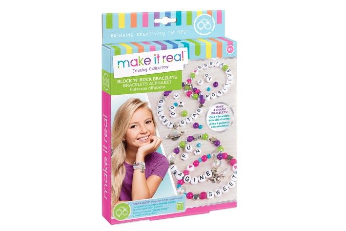 Výroba náramků, které se skládají z korálků a písmenek. Korálky se navlékají na vlasec, který je součástí. Součástí je mnoho barevných korálků, písmenek i doplňků. Baleno v krabici. Doporučený věk 8+