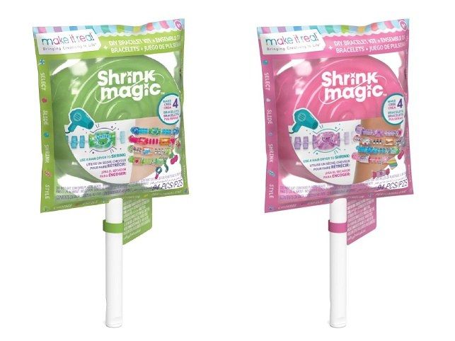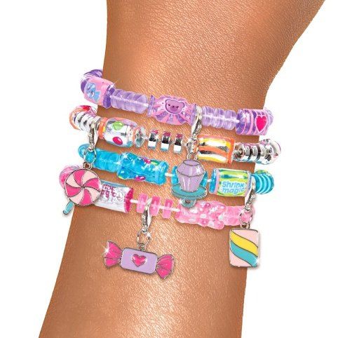 Kouzelné lízátko Shrink je místo, kde se nosí pamlsky, ale tady je kouzlo ve smršťovačce! Vytvořte si sladké a barevné doplňky! Vyberte náramek, poté vyberte obaly s designem cukroví a nandej je na korálky. Snadno aplikujte teplo pomocí fénu (není součást