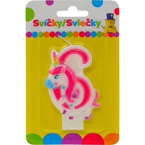 Narozeninová svíčka s JEDNOROŽCEM a číslem 6.