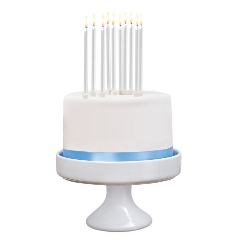 Dortové narozeninové svíčky se stojánky 10 ks, výška: 10 cm, průměr: 0,5 cm, bílé, na blistru