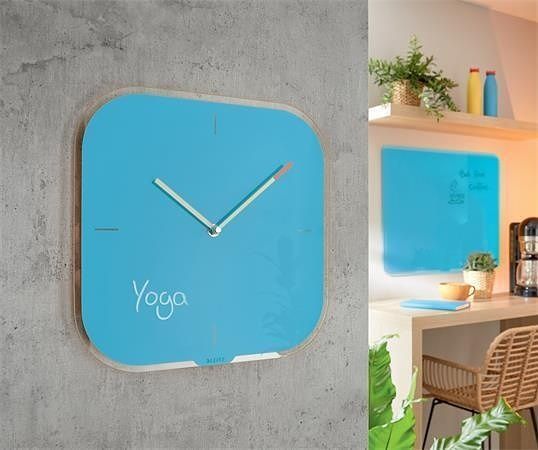 Skleněné nástěnné hodiny s perem pro zaznamenávání schůzek