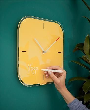 Skleněné nástěnné hodiny s perem pro zaznamenávání schůzek