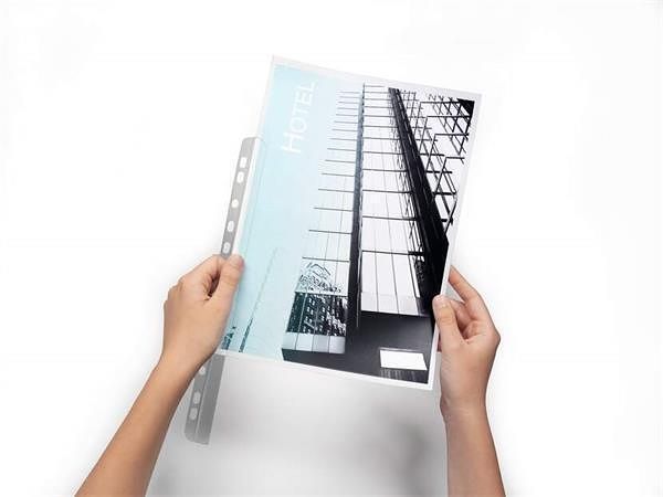 Násuvná lišta s děrováním pro ukládání dokumentů bez děrování, se zaoblenými rohy pro snadnější vkládání papíru.