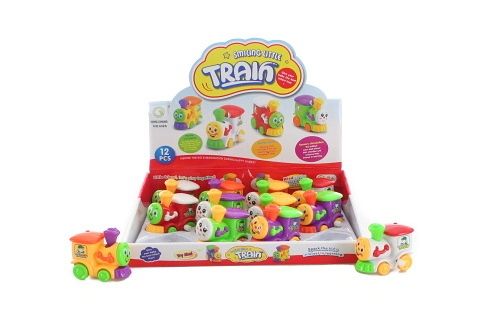 Plastová mašinka na natahování. Po natažení mašinka jede a hýbe komínem a obličejem. Rozměry mašinky cca 7 x 6 cm. Rozměry balení cca 31 x 23 x 7 cm. Věk 3+
