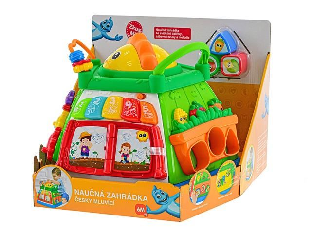 Česky mluvící zahrádka má mnoho funkcí. Je to naučná hračka pro děti - vkládačka, vydává zábavné zvuky a různé melodie, má mnoho pohyblivých a otočných částí a svítící tlačítka. Procvičujte s touto hračkou u dětí jejich senzomotorické schopnosti. Děti si tuto hračku zamilují. Česky mluvící zahrádka pro děti od 6 měsíců.