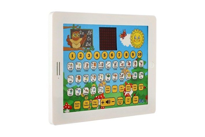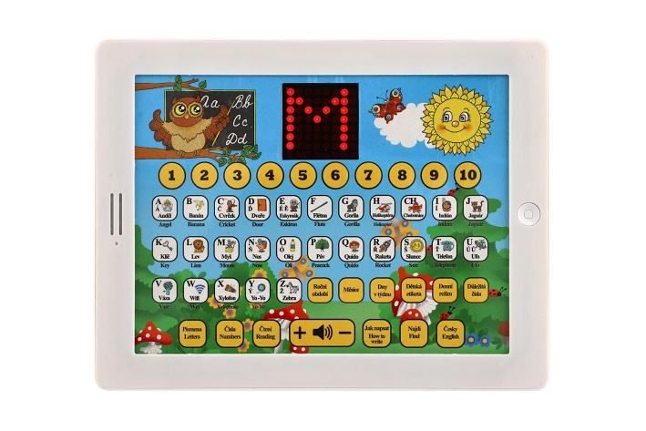 Dvojjazyčný dotykový tablet s LCD displejem učí děti číst, psát a počítat. Mohou si procvičit abecedu, čísla, slovíčka v češtině i angličtině, roční období, měsíce, dny v týdnu, ale také dětskou etiketu nebo důležitá telefonní čísla. Dále si poslechnou, jak probíhá celý den. Hračku uvedete do provozu stisknutím kulatého tlačítka a dále si vybíráte funkce pomocí dotyků prstem. Rozvíjí slovní zásobu, představivost a logické myšlení, zdokonaluje jemnou motoriku, rozvíjí zrak a sluch. Baterie 3x AAA jsou součástí výrobku.