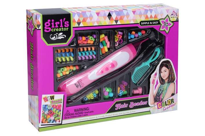 Navlékač korálků do vlasů 27cm. Balení obsahuje navlékač, korálky do vlasů, spirály do vlasů, hřebínek, český návod.