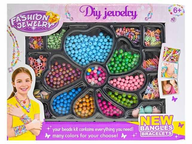 Navlékání korálků podporuje jemnou motoriku, trpělivost a fantazii vašeho dítěte. Korálky nejrůznějších tvarů může vaše díte libovolně navlékat na šňůrku a vytvářet tak náhrdelníky podle vlastní fantazie. Vhodné pro děti 6 let.