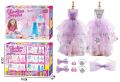 Návrhářské studio tvorba šatů set. Součástí pana (stojan) na šaty, látky, mašličky, nitě, ozdoby a další. 2 varianty - B_růžové, A_fialové šaty.