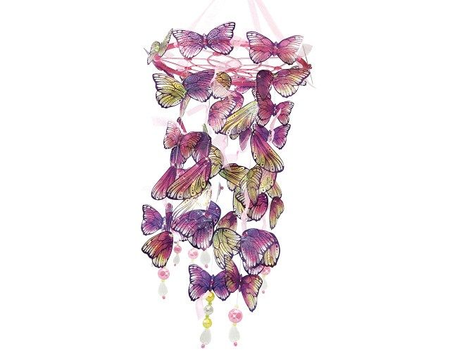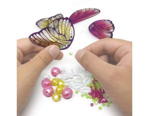 držátko, 65+ zářících křídel, 160+ korálků, stuha, elastická nit, kovový kroužek