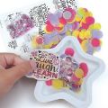 10 hvězd z papírové hmoty, 5 mini lahviček, 2 lahvičky s barvou, lahvička s inkoustem ve spreji, 6 stránek s inspirativních vzkazů, flitry a třpytivý prášek, papírové konfety, lepidlo, 40 korálků, 5 provázků, stránka s nálepkami, štětec, plastová hůlka, Petuliin příběh, pokyny