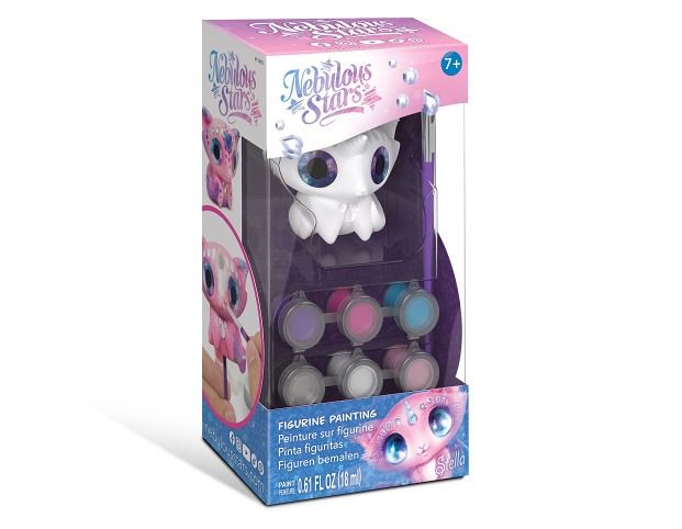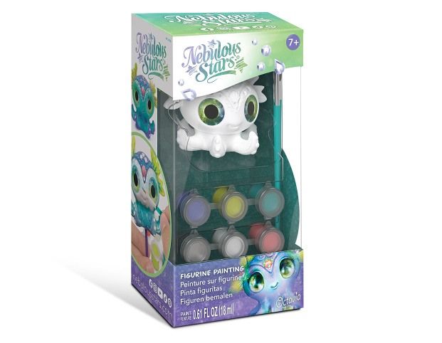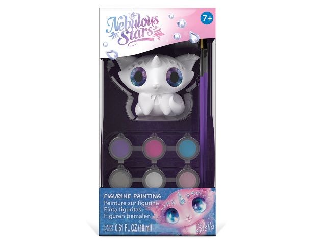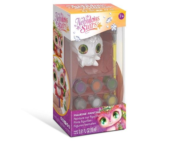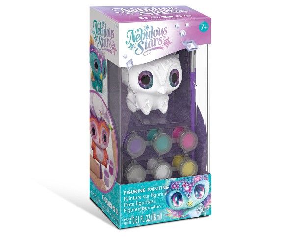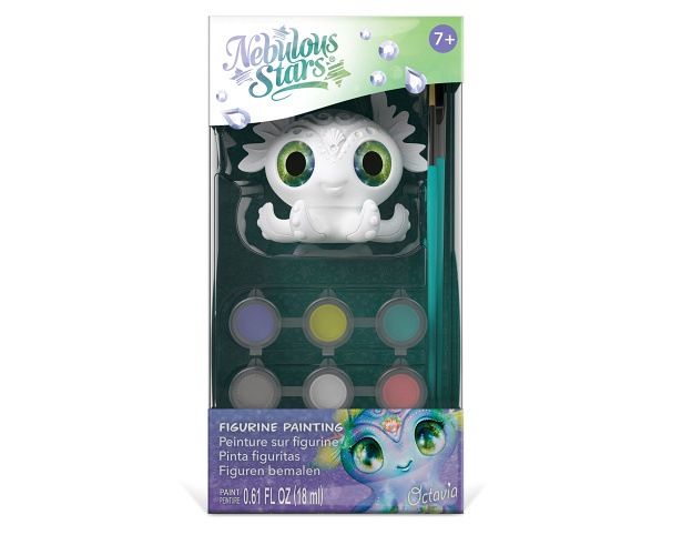 Nebulous Stars Barvení figurky. Velikost figurky 8 cm. Obsah - figurka, 5 barev, třpytivý lak, kamínky, 2 štětce, hůlka, návod. 6 variant.
