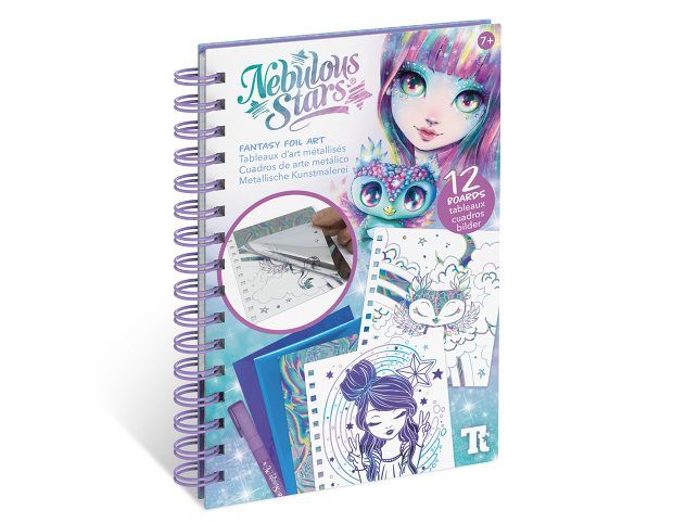 Nebulous Stars Fantasy tvoření pomocí fólie. 12 kreativních obrázků, 12 listů fóliového papíru, fóliové lepicí pero, pokyny, příběh Isadory.