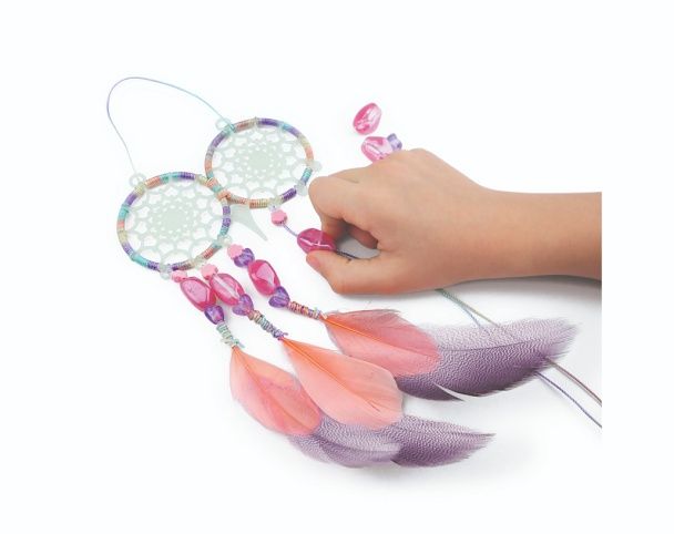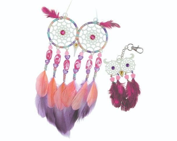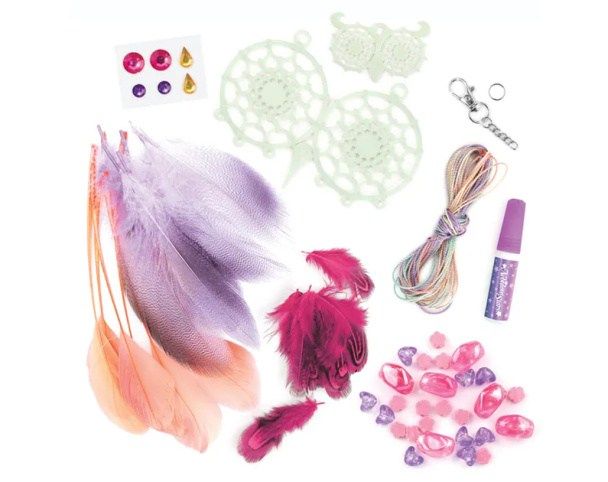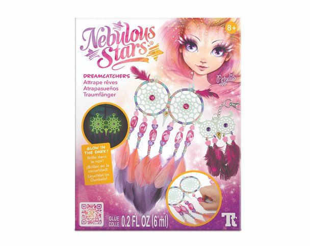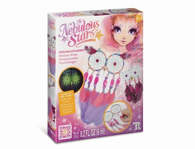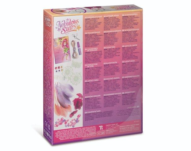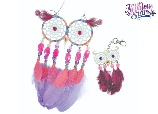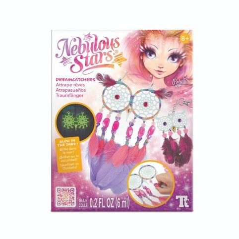 Nebulous Stars Lapač snů. obsah: 2 lapače snů, bavlněná nit, 18 peříček, 27 korálků, 6 samolepících kamínků, lepidlo na kamínky, 12 lepicích bodů, přívěsek na klíče s řetízkem, kroužek, Petuliin příběh, návod. Lapač svítí ve tmě.