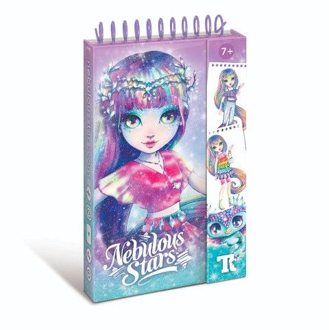 Nebulous Starts Návrhářský set na cesty . Rozměry 19,5x11x3 cm. Malý formát vhodný na cesty. Obsahuje 20 stránek s náčrtkem postavy, 2 stránky se šablonami pro oblečení (28 šablon). 6 archů se samolepkami (100 samolepek), 10 barevných pastelek, obrázkový návod. Display box 8 ks. Blok s magnetickým uzavíráním.