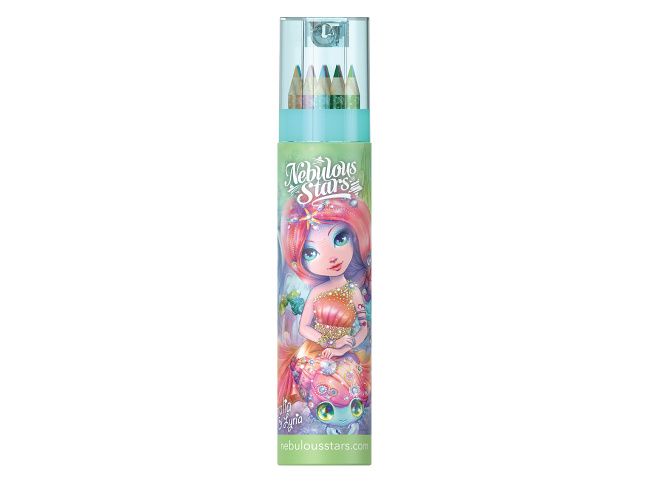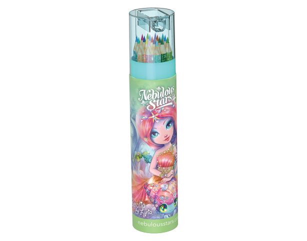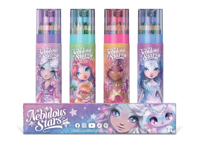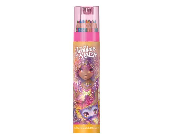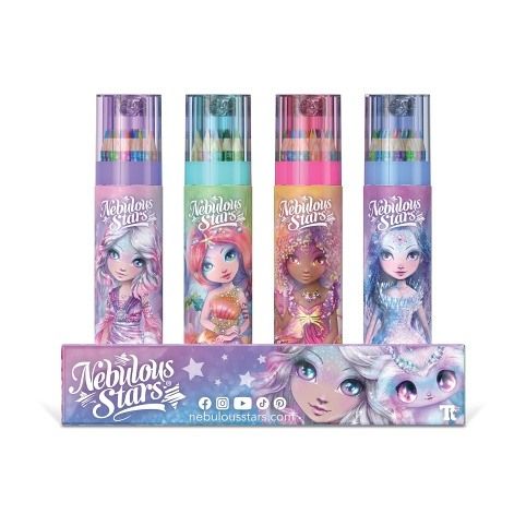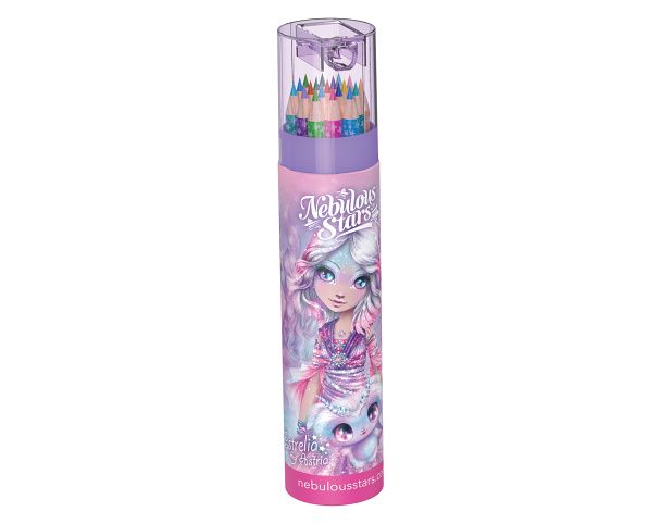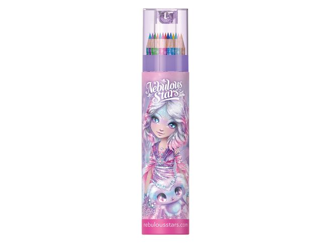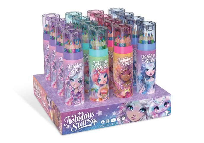 obsahuje 18 barevných pastelek, 1x Nebulous Star tužku, integrované ořezávátko, assort: fialová, zelená, růžová, modrá, display box 16 ks