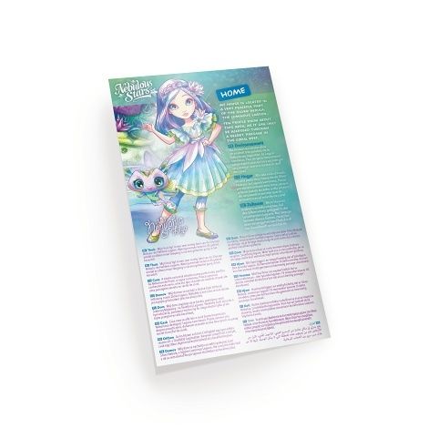 balení obsahuje: stojánek z lepenky pro Nenuphii, 25 papírových šablon, 360 papírových lastur a květů, 4 archy s razítky, lepidlo, kamínky, 10 ozdobných připínáčků, stuha, aplikátor drahokamového pera, návod