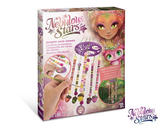 Nebulous Stars zvonkohra Hazelia. Set na výrobu vlastní zvonkohry, namaluj a slož. Obrázkový návod v balení. Obsah balení - 6 bambusových válečků, 5 umělých žaludů, podpora a základna, 5 barev, třpytivý lak, 2 epoxidové samolepky, 15 dřevěných korálků, 2 štětce, voskovaný provázek, příběh, návod.