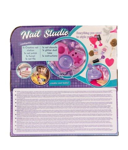Nové nehtové studio. Vyber si barvu laku nebo třpytek, nalakuj si nehty, nasyp na ně třpytky a poté usuš v pícce. Součástí je i sušička a úložný prostor pro 2 laky, 2 tuby s třpytkami, šablona, trychtýřek, aplikátor třpytek. Výrobek je na baterie. Na baterie: 2x AA (nejsou součástí balení)