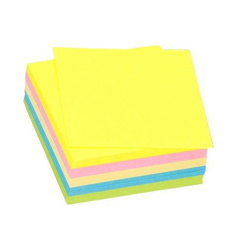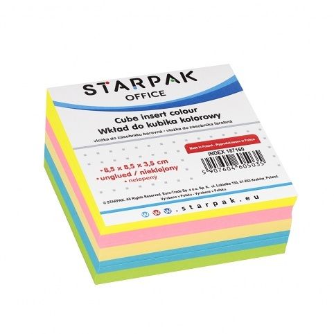 Nelepený bloček na poznámky s barevnými listy. Vhodný do kovových i plastových zásobníků Starpak. Rozměr: 85 x 85 mm.