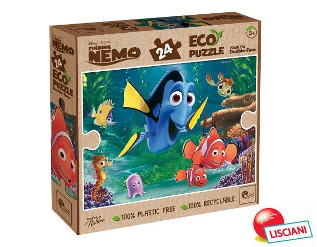 Hledá se Nemo ECO-Puzzle 24 2v1. Oboustranné puzzle, 24 dílků. Rozměry 70 x 50 cm. Přední strana s barevným obrázkem, na zadní straně předkreslený k vymalování. Plně recyklovatelné puzzle, vyrobené bez použití škodlivých materiálů a chemických látek.