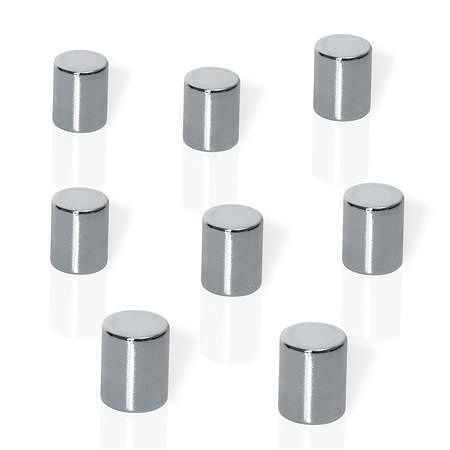 Neodymové magnety, tvar válce, stříbrná, R 0,8 x 1 cm, 8 ks, BE!BOARD