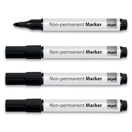 Nepernamentní popisovač, černá, 1-3 mm, kuželovitý, 4ks, SIGEL