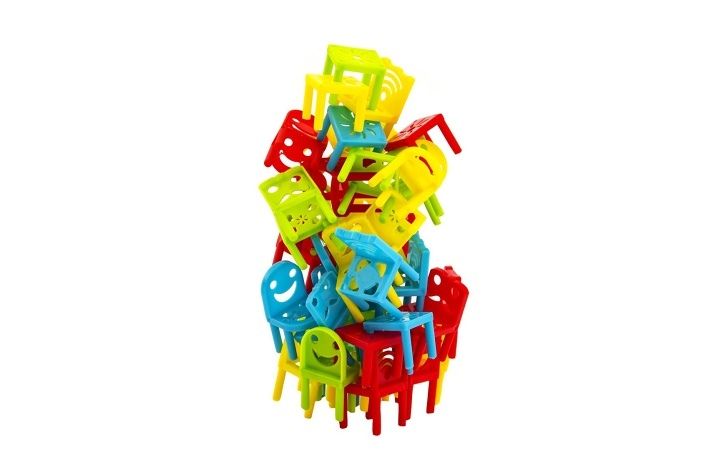 Každou variantu hry si můžete ztížit tím, že budete při stavění používat pouze jednu ruku. Můžete vymýšlet i svoje vlastní pravidla. Tvoření se meze nekladou. Neposedné židle rozvíjí myšlení a jemnou motoriku dítěte.