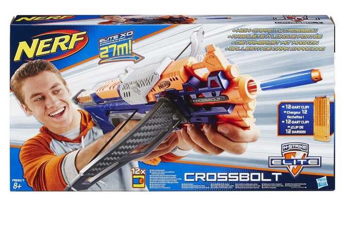 Balení obsahuje kuš, zásobník na 12 šipek a 12 šipek.