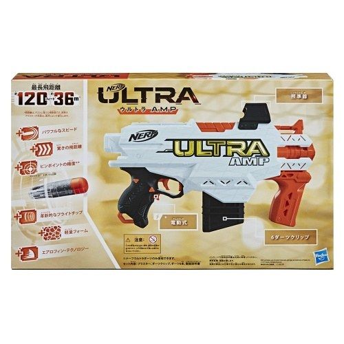 Blástr NERF Ultra AMP je vybaven vestavěnými mířidly a otvorem na připevnění pažby. Tento blástr je vybaven naším prvním motorizovaným systémem zásobníku. Střílejte šipky až do vzdálenosti 36 metrů. Zahrnuje zásobník na šipky pro rychlé nabíjení. Jako zkušený bojovník NERF nyní získáte blástr a šipky, s nimiž dosáhnete nepřekonatelné výhody nad protivníky! Na baterie: 6x AA (nejsou součástí balení)