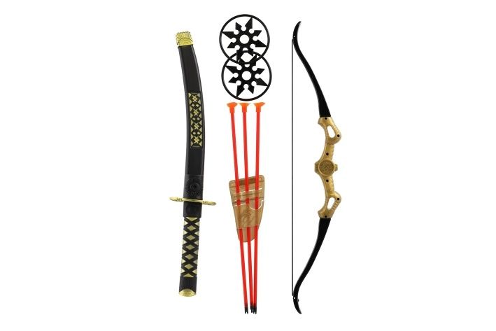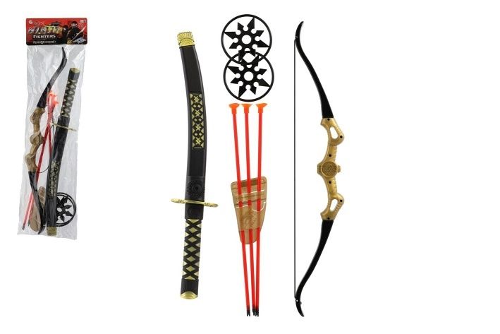 Ninja sada plast meč, hvězdice 2ks, luk + šípy na přísavku 3ks v sáčku 17x60x5cm