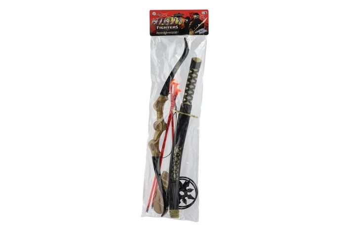 Ninja sada plast meč, hvězdice 2ks, luk + šípy na přísavku 3ks v sáčku 17x60x5cm