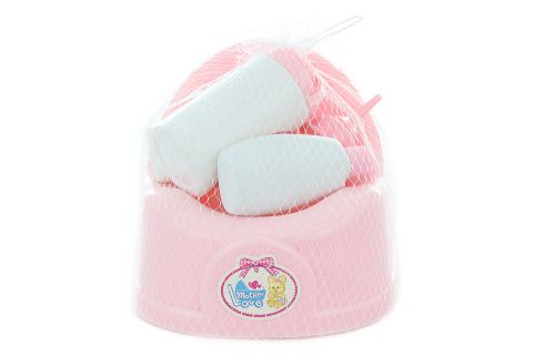 Plastový nočník pro panenky balený v síťce. Rozměr 18 x 15 x 13 cm. Součástí jsou 4 doplňky. Věk 3+