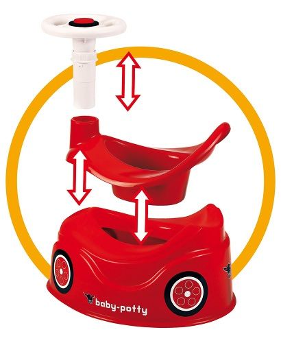 Nočník Big s volantem a s klaksonem. Vyšší opěrka zad, široká, stabilní základna. Barva červená. Rozměry: 43 x 28 x 31 cm.
