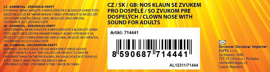 Nepřehlédnutelný nos pro klauny se zvukovým efektem! Stačí stisknout nos a uslyšíš pískavý zvuk. Paráda! Tato senzační vychytávka nesmí chybět žádnému klaunovi!