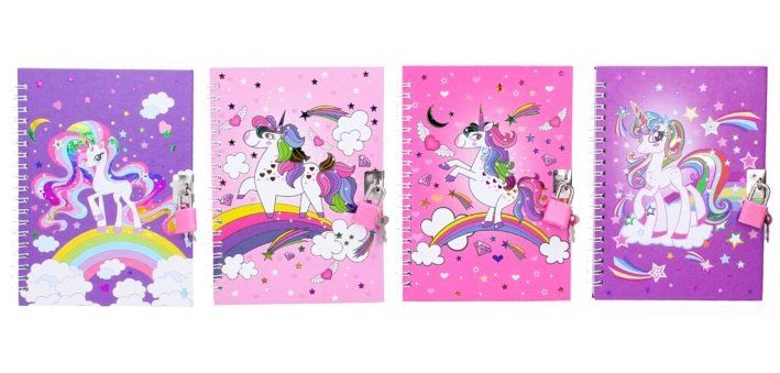 Notes 13x18 cm, 48 listů se zámkem jednorožec / W010862