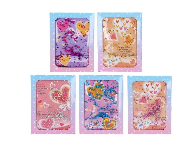 Notes 15x21cm, 80 listů srdce, glitter s tekutinou