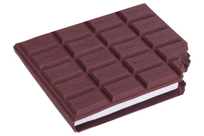 Notes nelinkovaný ve tvaru čokolády 8,5x10 cm.