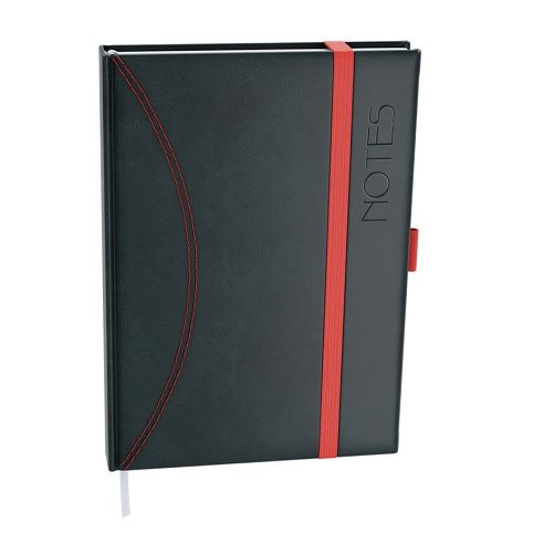 -Elegantní notes ve formátu A5, v černočervené kombinaci.